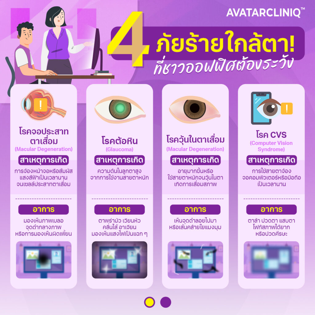 สำหรับชาวออฟฟิศที่ใช้สายตาอย่างหนัก ทั้งจ้องคอมพิวเตอร์ เช็กมือถือหรือเอกสารกองโต การไม่ดูแลดวงตาอาจนำไปสู่ปัญหาดวงตาที่น่ากังวล